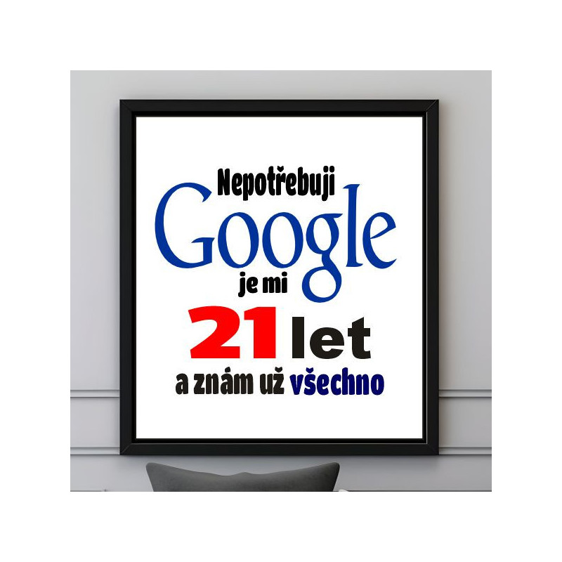 Hledáte originální a vtipný dárek k 21. narozeninám, který oslavence pobaví a zároveň ozdobí jeho interiér? Tento humorný obraz s textem „Nepotřebuji Google, všechno vím!“ je trefnou volbou pro každého, kdo má smysl pro humor a nebojí se to dát najevo!