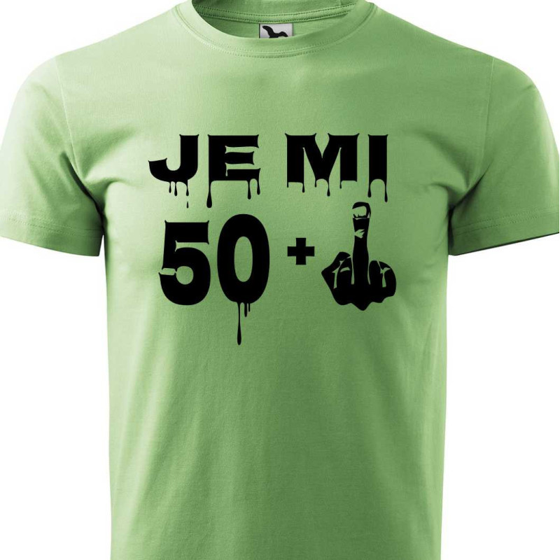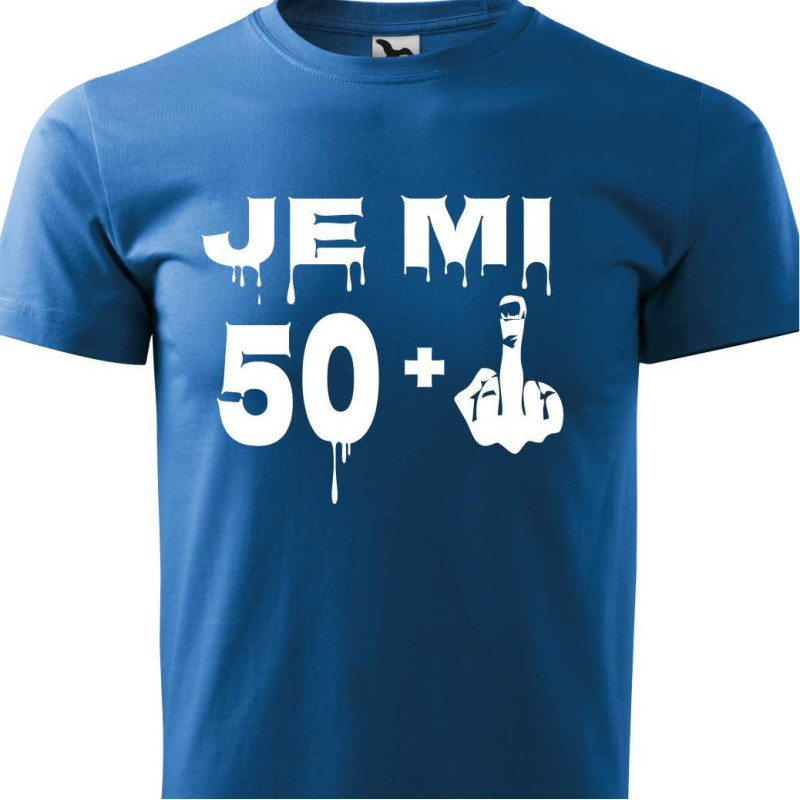 Pánské tričko s vtipným potiskem: Je mi 50 plus prostředníček je ideální dárek k 51 narozeninám. Pokud hledáte tričko k oslavě 51. narozenin tak tohle je skvělá volba.