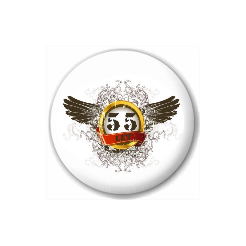 Kulatá placka se spínacím špendlíkem, přední strana je krytá průhlednou lesklou fólií pro ochranu a efektnější vzhled motivu.