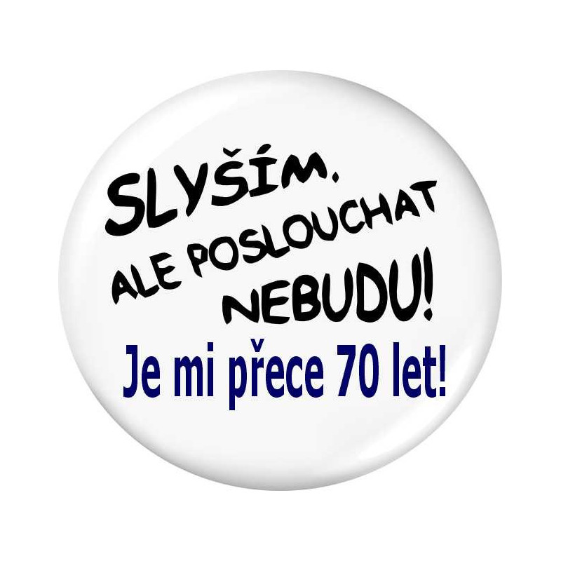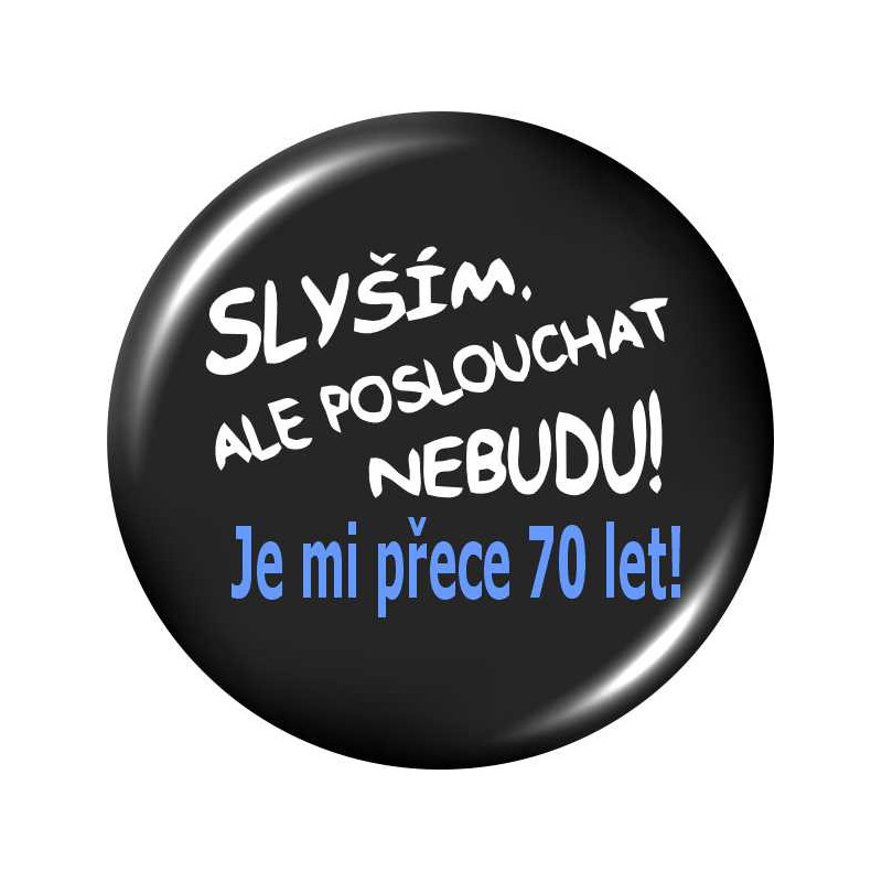 Placka s vtipným potiskem k 70. narozeninám je ideální volbou pro ty, kteří oslavují toto kulaté jubileum s radostí a humorem. Skvělý dárek, který pobaví a udělá z oslavy nezapomenutelný zážitek.