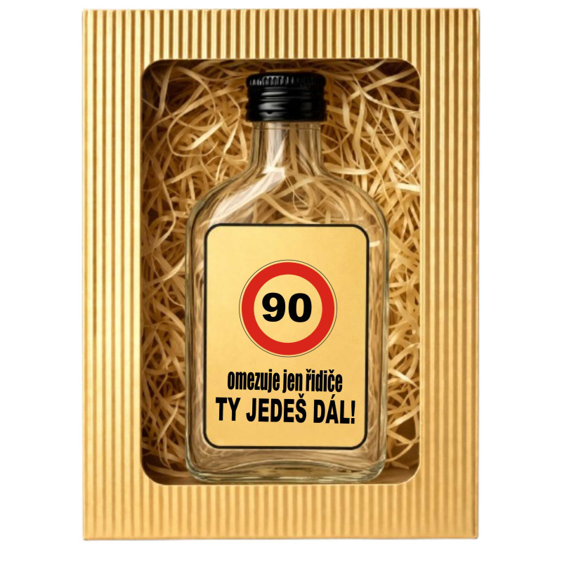 Devadesát let je úctyhodné jubileum, které si zaslouží oslavu s nadhledem a stylem. Placatka s nápisem „90 omezuje jen řidiče. Ty jedeš dál.“ je originální dárek pro muže, který má za sebou bohatý život plný zážitků a stále si ho umí užívat. Vtipný motiv dodá oslavě lehkost a ukáže, že věk je jen číslo.