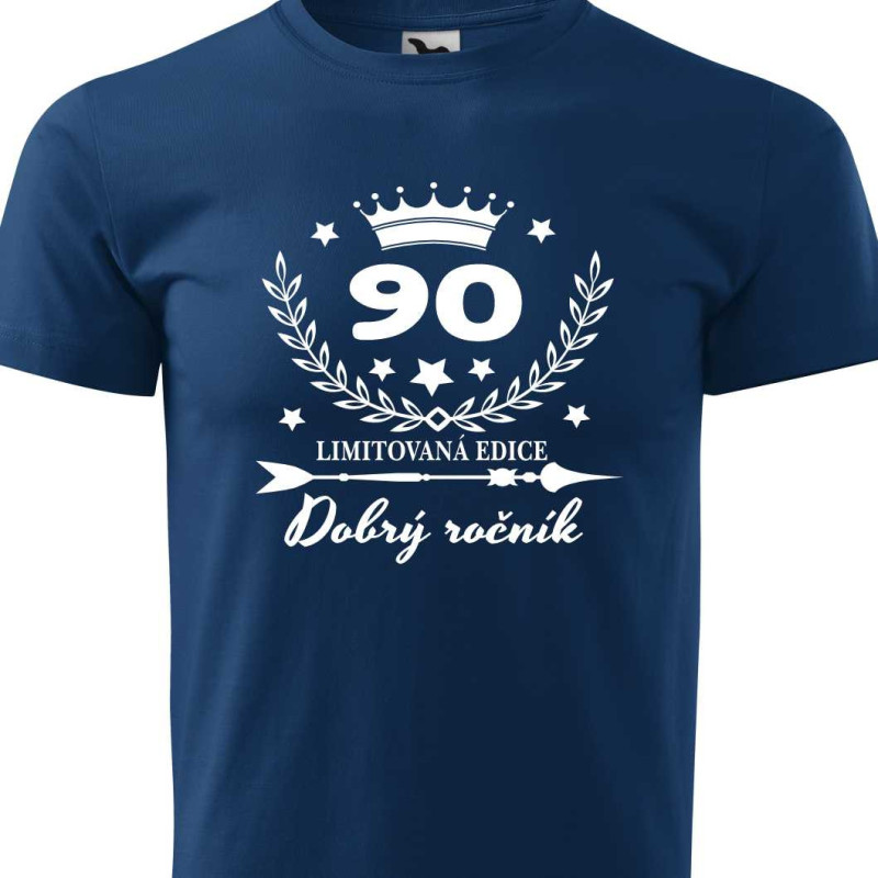 Pánské bavlnění tričko s potiskem "90 let dobrý ročník - limitovaná edice" je ideální k oslavě 90. narozenin pro dospívajícího muže. Udělejte radost oslavenci praktickým dárkem k 90. narozeninám.
