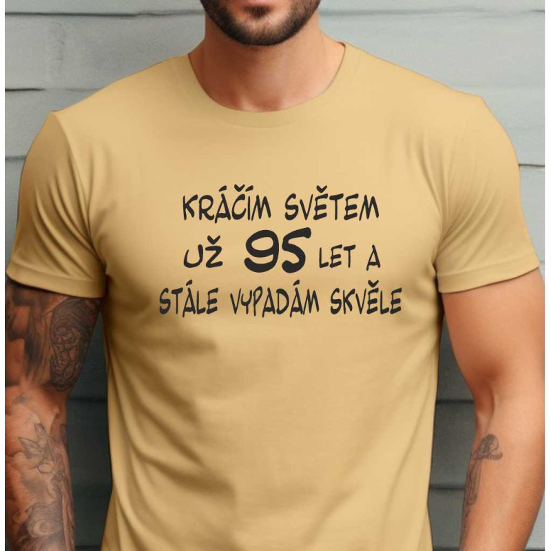 Pánské bavlněné tričko s krátkým rukávem s potiskem: Kráčím světem už 95 let a stále vypadám skvěle.