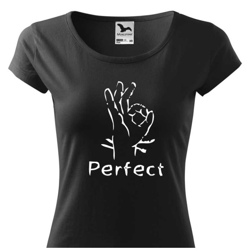 Dámské tričko s potiskem "Perfect" je tričko pro ženu, která oceňuje dokonalost. Jste perfektní? Potom Vám tohle kvalitní bavlněné tričko mesmí chybět. Udělejte si radost s tričkem, které nikdy nevyjde z módy.