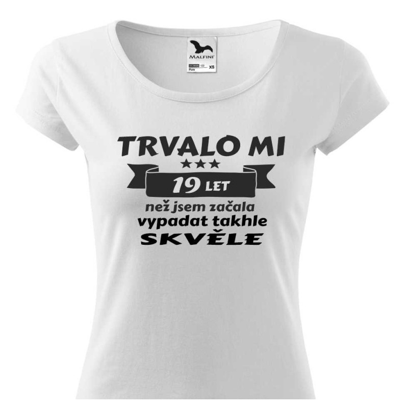 Dámské narozeninové triko s nápisem "Trvalo mi 19 let než jsem začala vypadat takhle skvěle" je ideálním dárkem pro přítelkyni, dceru, sestru nebo třeba i pro sebe. Toto triko je navrženo tak, aby přesně vystihlo pocit sebevědomí a radosti ze svého vzhledu a věku.