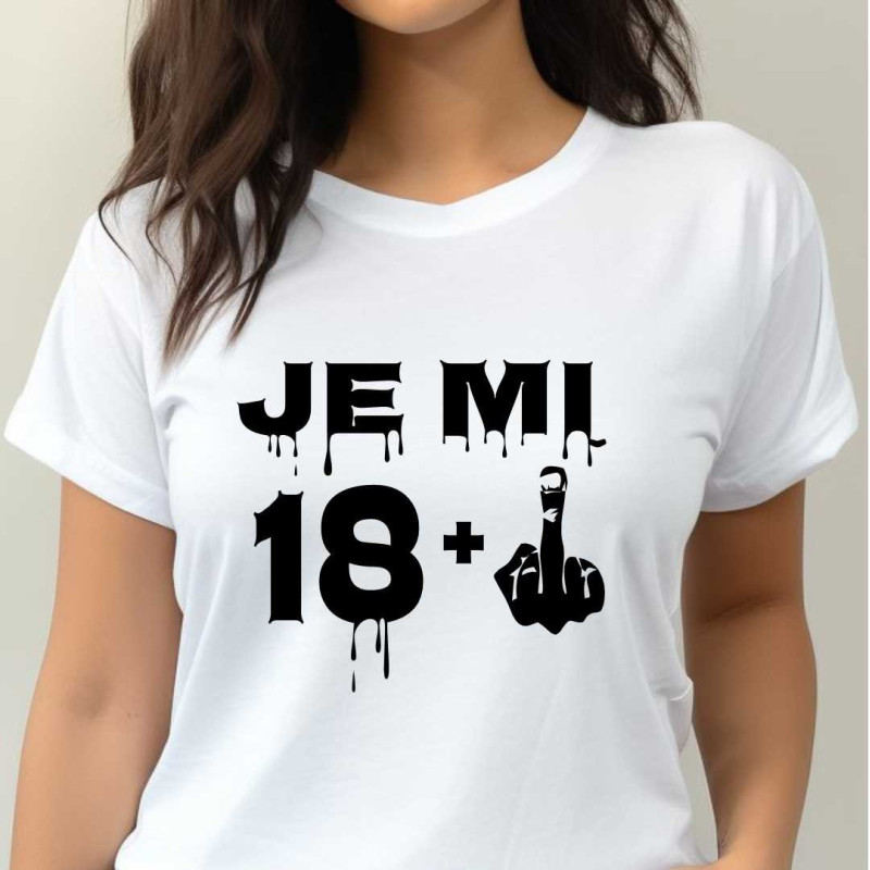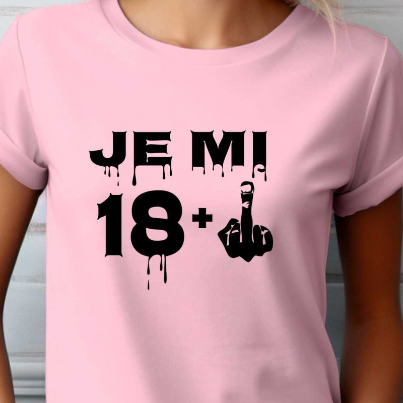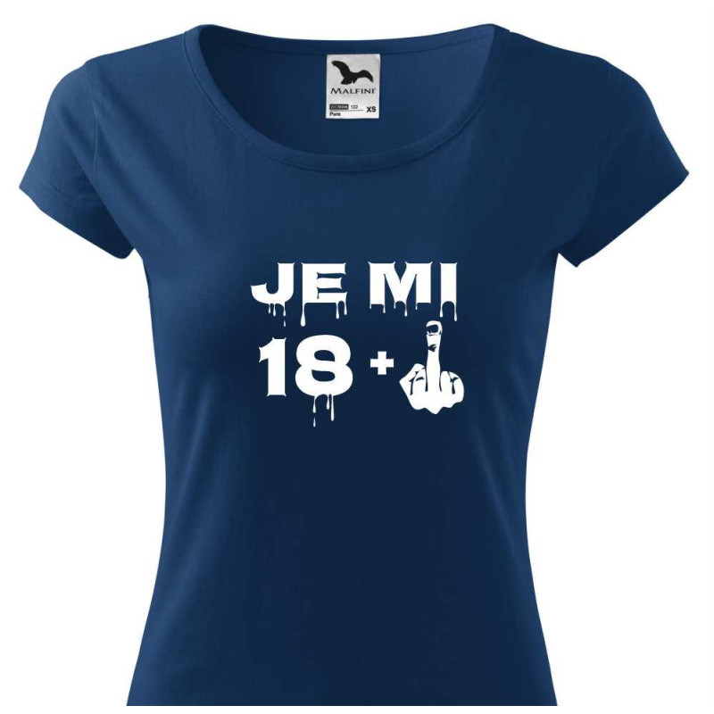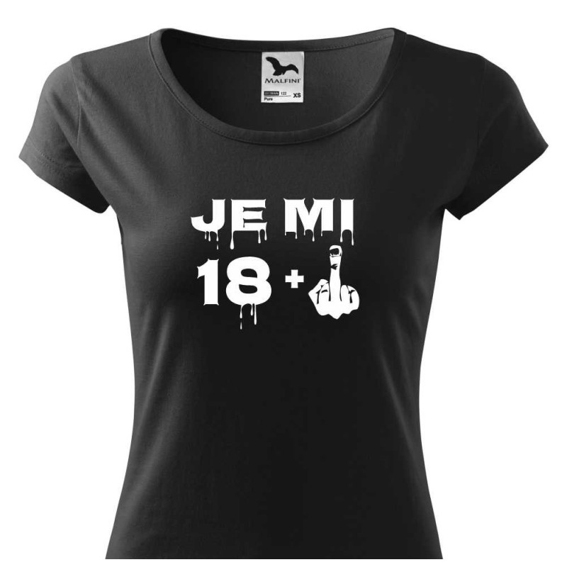 Dámské tričko s vtipným potiskem "Je mi 18 plus prostředníček" je k oslavě 19. narozenin. Udělejte radost tímto tričkem jako dárkem k 19. narozeninám sestře, dceři, přítelkyni nebo kamarádce.
