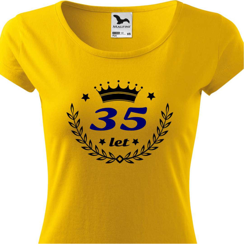 Dámské tričko s potiskem "35 let" je originálním dárkem k 35. narozeninám pro ženu. Tričko s potiskem vytvoří příjemnou náladu, vykouzlí úsměv a bude vzpomínkou na člověka, který tričko daroval. Tričko k oslavě 35. narozenin.