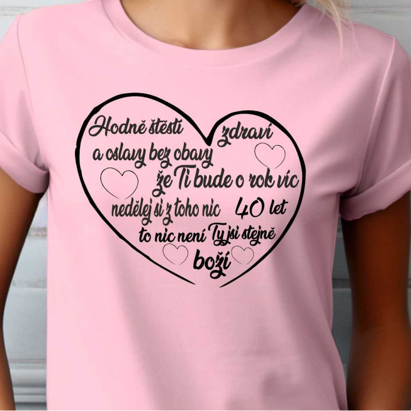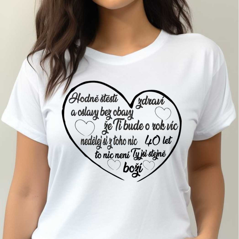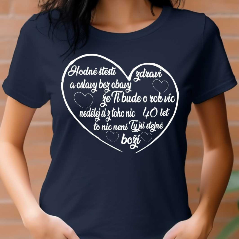 Dámské tričko s potiskem krásným přáním k 40. narozeninám. Tričko je skvělé k oslavě a také jako dárek k 40. narozeninám. Udělejte radost tímto upřimným dárkem a oslavu na kterou se bude jěště dlouho vzpomínat.