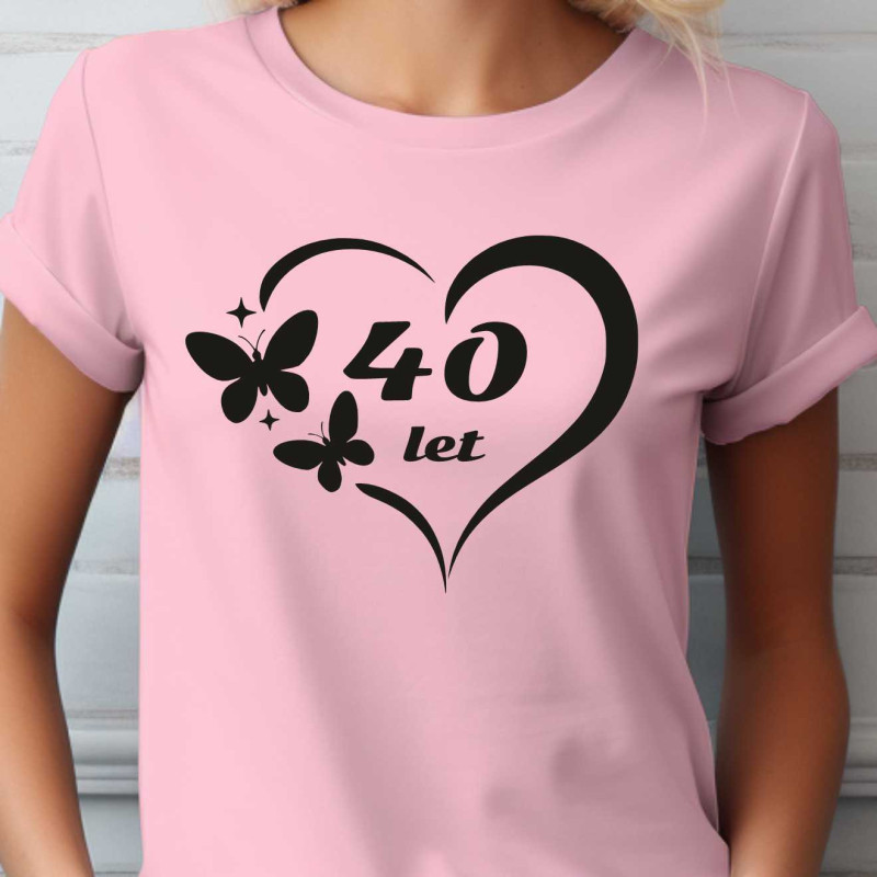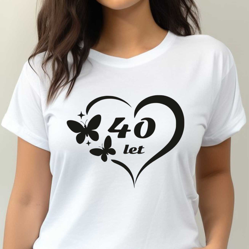 Motiv motýlků a srdce vyjadřuje lehkost bytí a radost ze života, což je přesně to, co by měla čtyřicátnice cítit. Naše tričko je navrženo tak, aby podtrhlo ženskost a eleganci, kterou věk přináší. Žena se v něm bude cítit výjimečně při každém nošení.