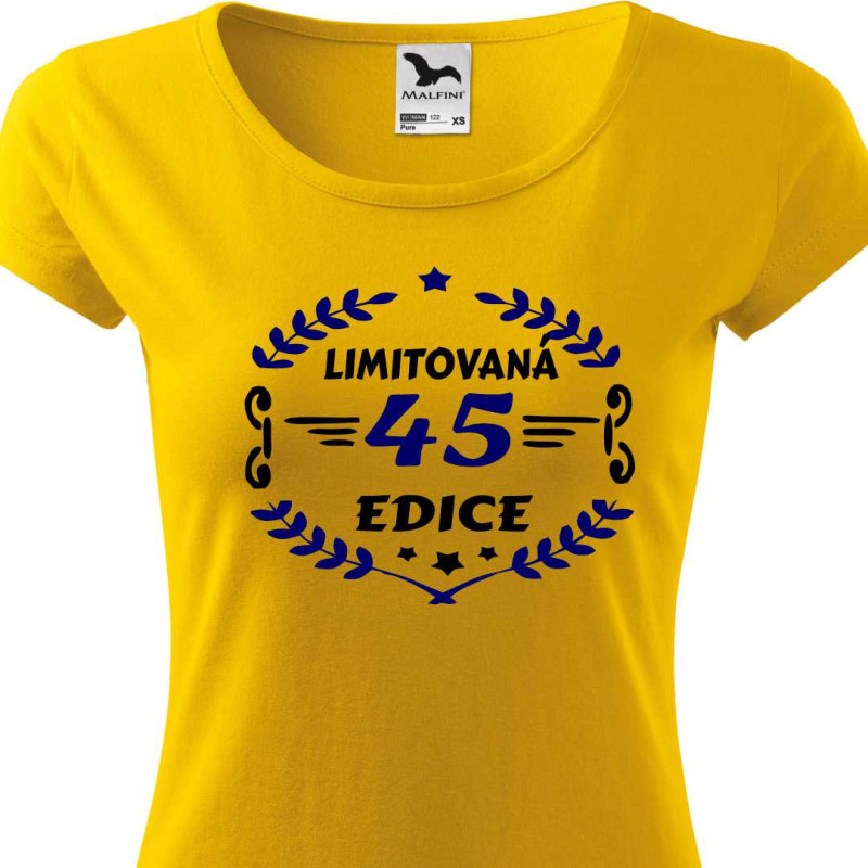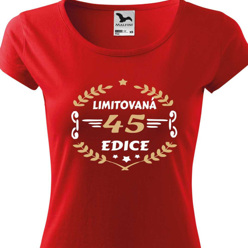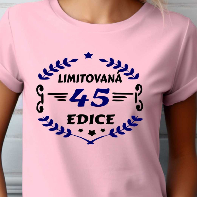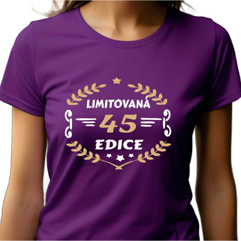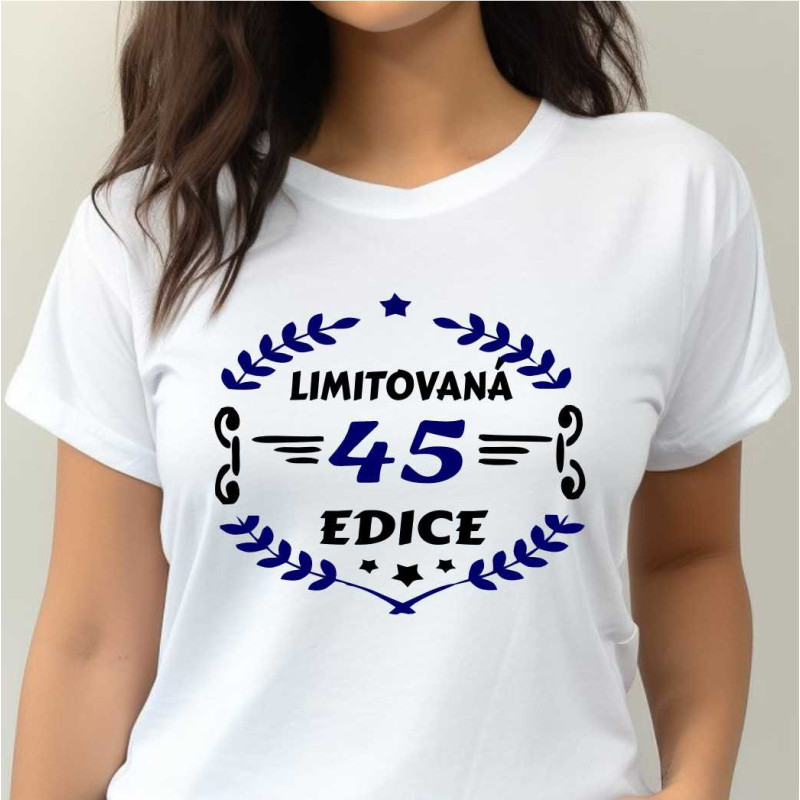 Dámské narozeninové triko s potiskem "45 limitovaná edice". Kvalitní bavlněné triko s krátkým rukávem s potiskem motivu, který je ideální jako dárek k 45. narozeninám pro ženu. Udělejte radosy na oslavě narozenin své blízké žěně, která Vám bude za to vděčna.