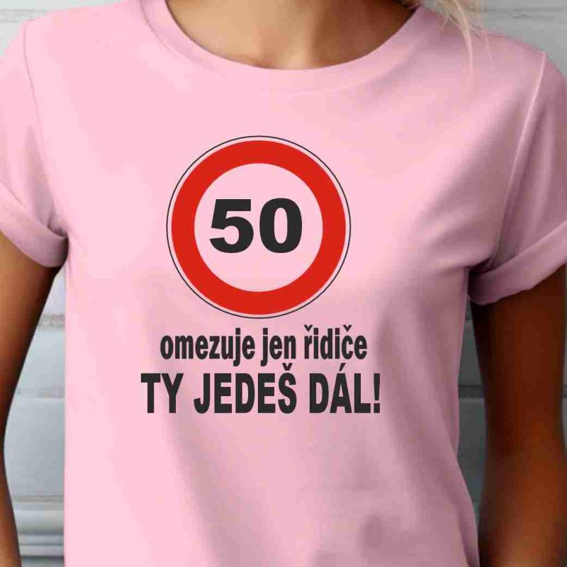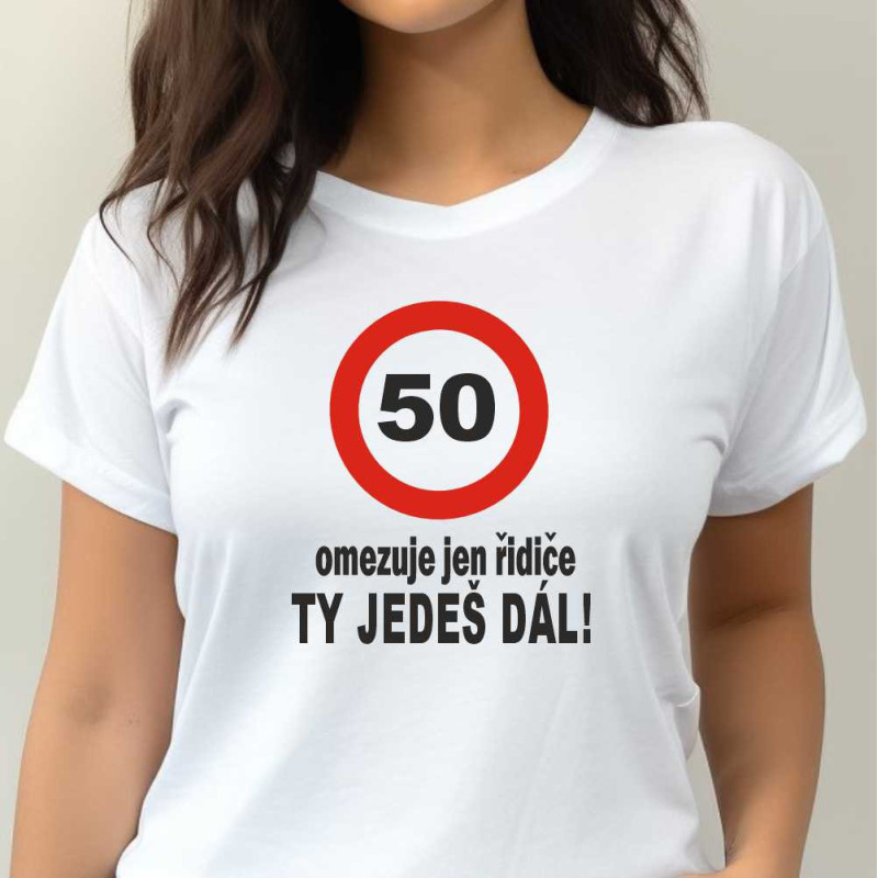 Neváhejte a potěšte svou blízkou oslavenkyni tímto originálním dárkem, který jí připomene, že padesátka je jen začátek nové, vzrušující kapitoly jejího života. Tričko s nápisem "50 omezuje jen řidiče. Ty jedeš dál." je více než jen oblečení – je to symbol toho, že nejlepší roky teprve přicházejí!