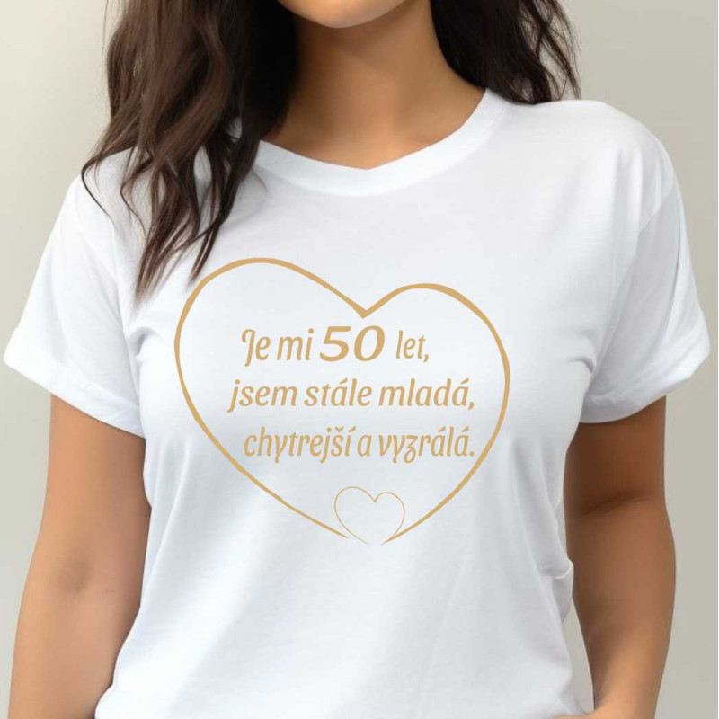 Dopřejte ženě, která slaví půlstoletí, dárek, který ji rozesměje a zároveň potěší. Objednejte dámské tričko "Je mi 50 let a jsem stále mladá" ještě dnes a buďte připraveni na její nadšenou reakci!