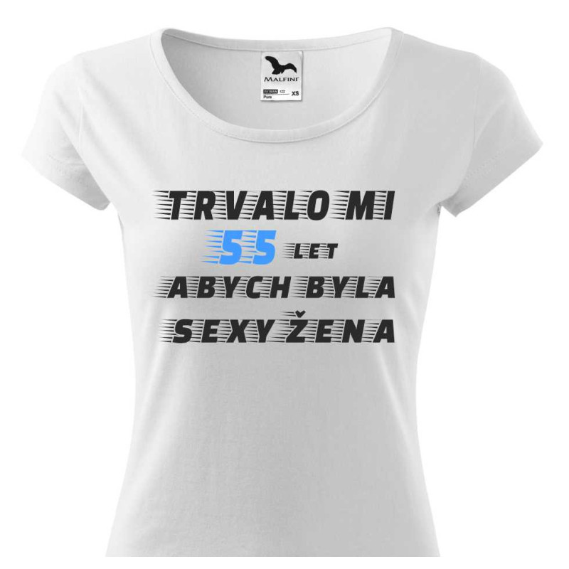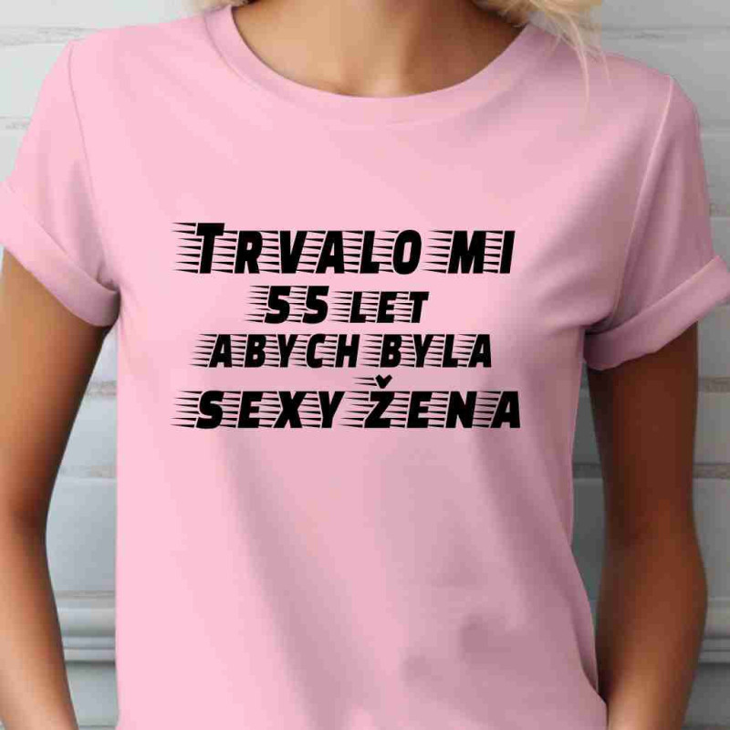 Toto vtipné tričko s nápisem "Trvalo mi 55 let, abych byla sexy žena" je ideální volbou pro každou sebevědomou oslavenkyni, která se nebojí ukázat svůj smysl pro humor.
