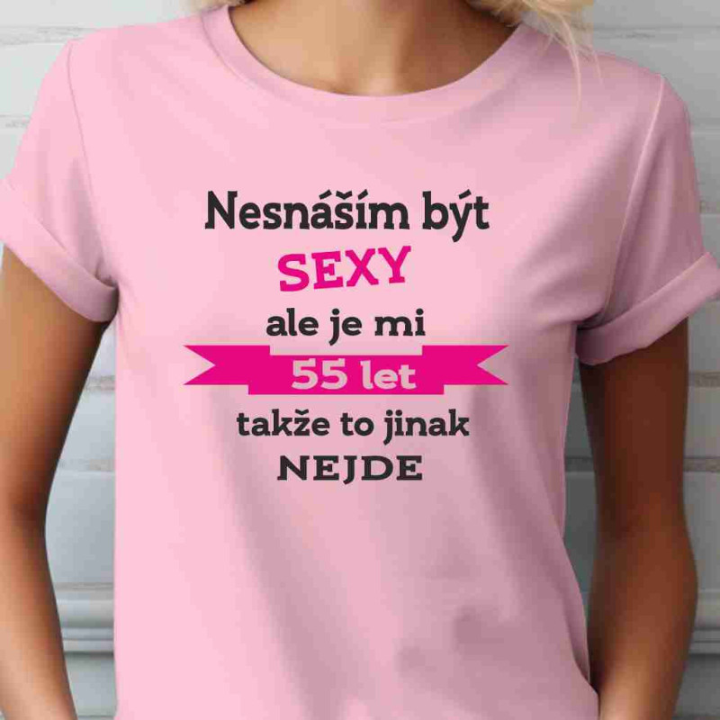 Vtipný potisk, který zaručeně pobaví Originální hláškou "Nesnáším být sexy, ale je mi 55 let, takže to jinak nejde" vykouzlíte úsměv na tváři každé oslavenkyně. Text perfektně vystihuje sebevědomí zralé ženy, která si ze svého věku umí udělat legraci. Tričko se stane okamžitě oblíbeným kouskem šatníku.