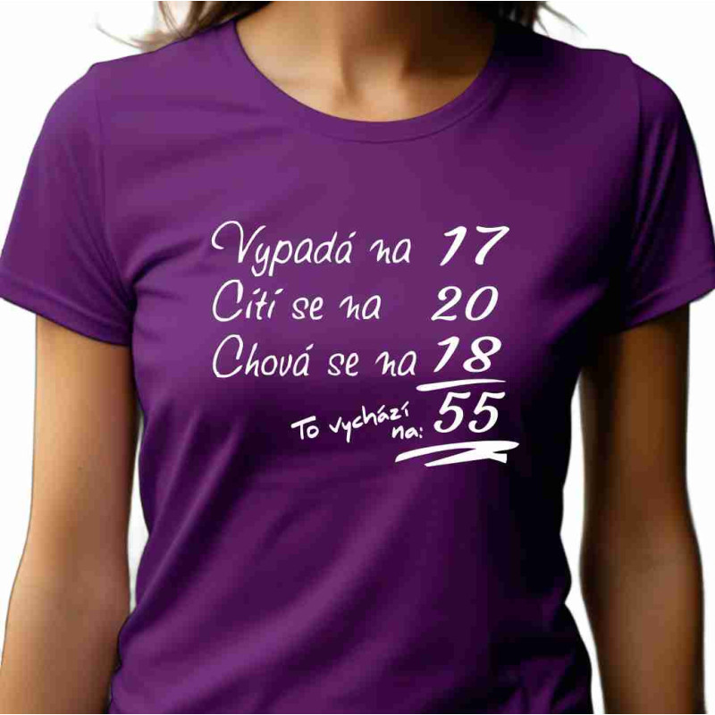 Tričko s potiskem "Vypadá na 17, cítí se na 20, chová se na 18, to vychází na 55 let" je skvělým způsobem, jak pobavit oslavenkyni a její hosty. Tento vtipný a originální dárek zaručeně vykouzlí úsměv na tváři a stane se oblíbeným kouskem v šatníku. Připomeňte si, že věk je jen číslo a důležité je, jak se cítíme uvnitř.