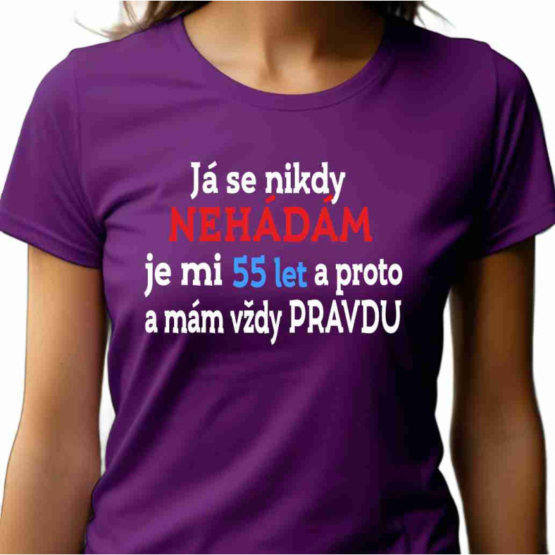 Hledáte originální dárek pro ženu, která slaví 55. narozeniny? Toto tričko s humorným nápisem "Já se nikdy nehádám, je mi 55 let a proto mám vždy pravdu" je přesně to, co potřebujete! Vykouzlí úsměv na tváři každé oslavenkyně, která si ráda dělá legraci ze svého věku.