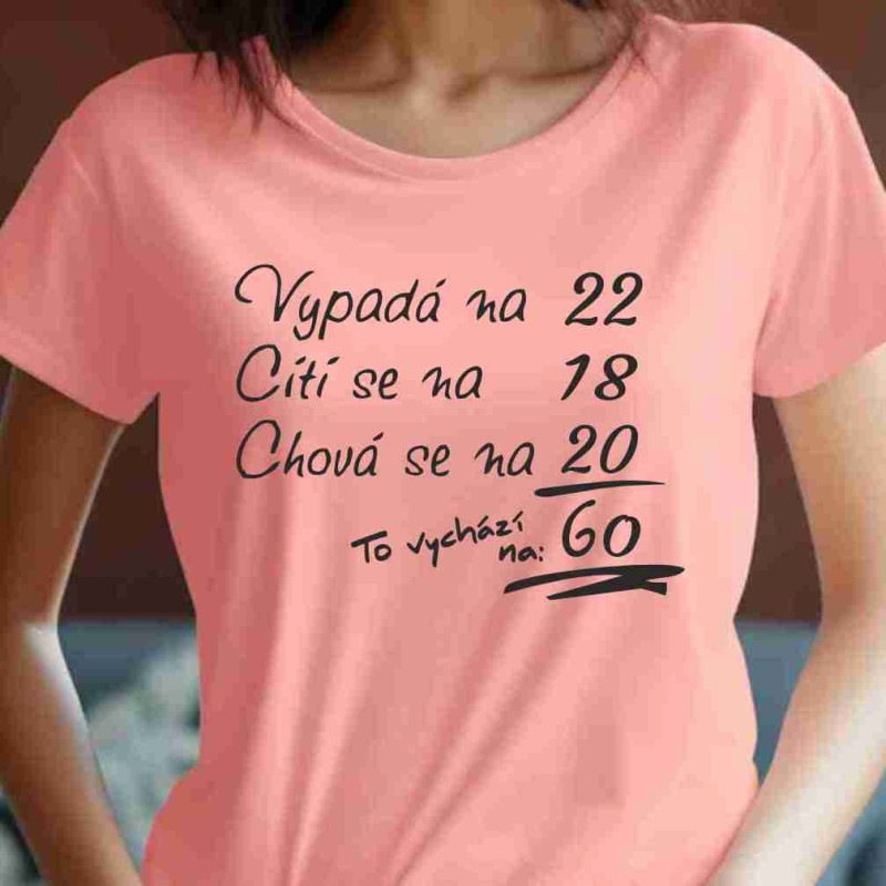 Hledáte dokonalý dárek k narozeninám pro dámu, která právě oslavuje kulatých šedesát? Chcete něco, co je stejně jedinečné a plné humoru jako ona? Dámské narozeninové tričko s nápisem "Vypadá na 18,cítí se na 22, chová se na 20. To vychází na 60."