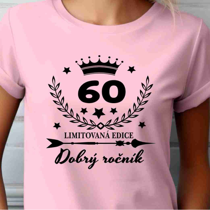 Dámské tričko s vtipným potiskem 60 dobrý ročník je skvělým vtipným dárkem k 60. narozeninám. Udělejte oslavu 60. narozenin zábavnou a darujte tohle kvalitní bavlněné tričko, které udělá radost.