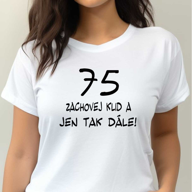 Toto tričko je perfektním dárkem pro ženu, která slaví své 75. narozeniny s nadhledem a v klidu! S vtipným nápisem „75 let, zachovej klid a jen tak dále“ oslavuje její moudrost, vyrovnanost a životní pohodu. Je to skvělý způsob, jak připomenout, že věk je jen číslo a ona je stále silná a sebevědomá.