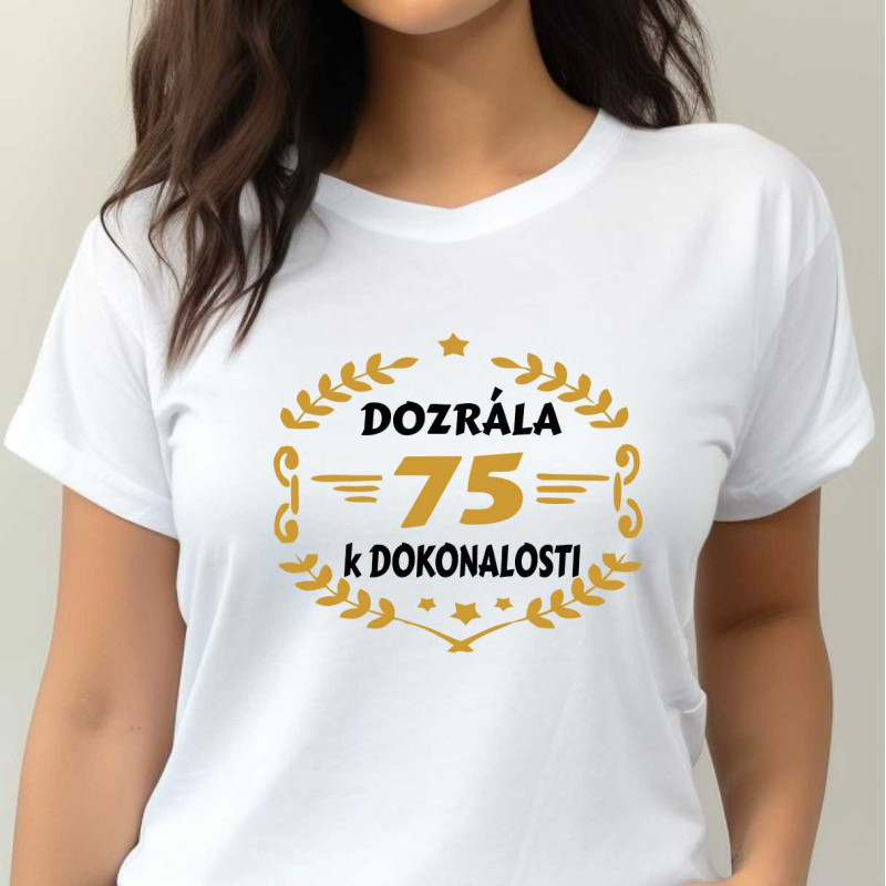 Tričko je skvělým dárkem pro každou ženu, která slaví své 75. narozeniny a může hrdě říct, že je v té nejlepší formě! S nápisem „75 let, dozrála k dokonalosti“ oslavuje její životní moudrost, krásu a vše, co za těchto 75 let prožila.