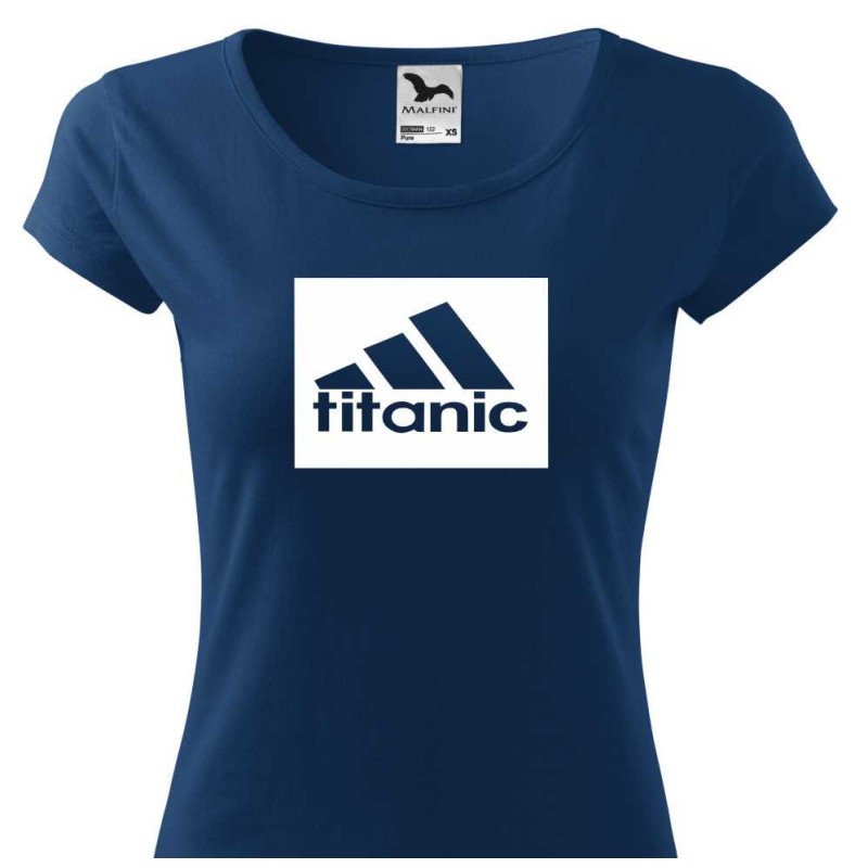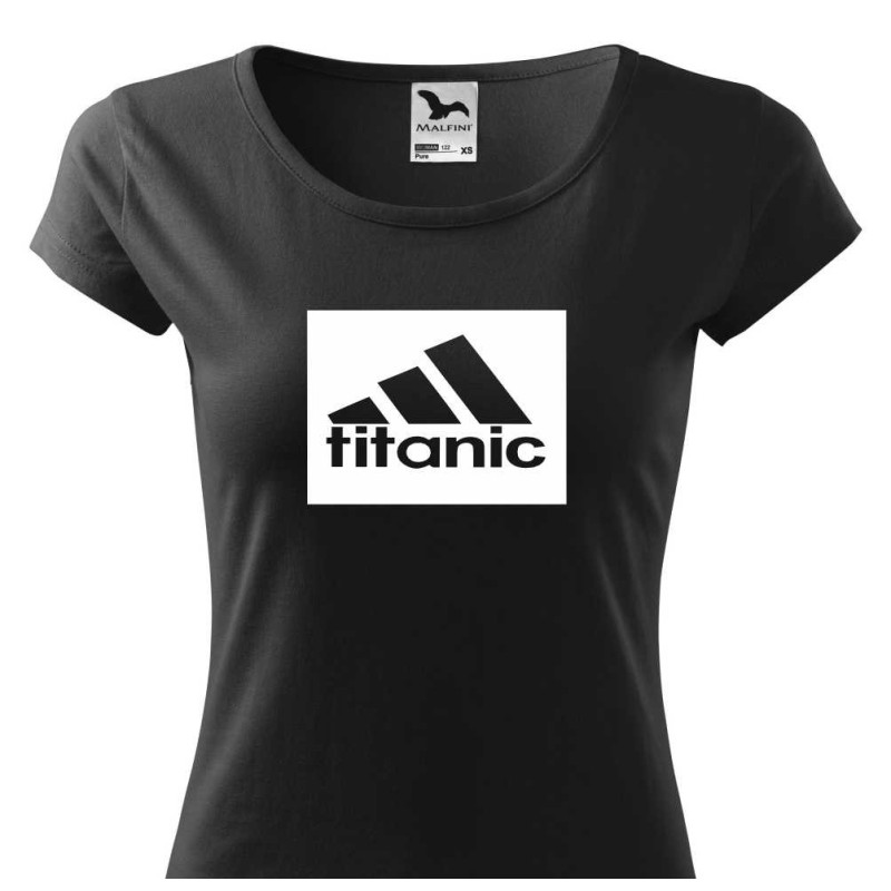 Dámské tričko s vtipným potiskem parodie "Titanic v podobě adidasu". Udělejte si radost nebo osobě blízké bavlněným vtipným tričkem, které nikdy nevyjde z módy. Skvělý dárek k jakékoliv příležitosti.