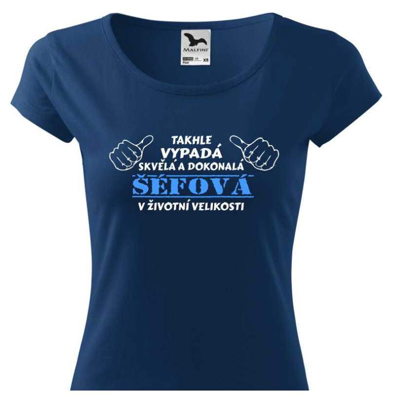 Hledáte originální dárek pro vaši skvělou šéfovou? Představujeme vám vtipné tričko s nápisem "Takhle vypadá skvělá a dokonalá šéfová" v životní velikosti!