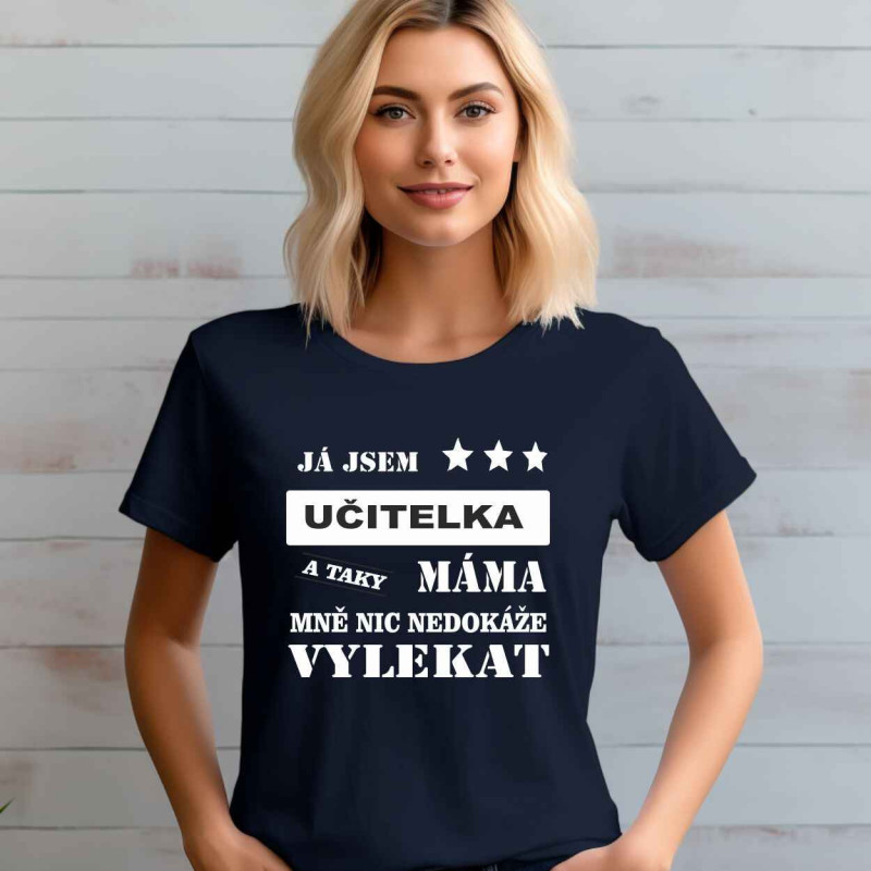 Originální tričko pro učitelku, která svou práci zvládá s úsměvem a nadhledem! Perfektní dárek na Vánoce, k pololetí, ke konci školního roku nebo prostě jen tak, jako malé poděkování. Kvalitní materiál a pohodlný střih ji budou provázet každý den, a potisk dodá její osobnosti šmrnc.
