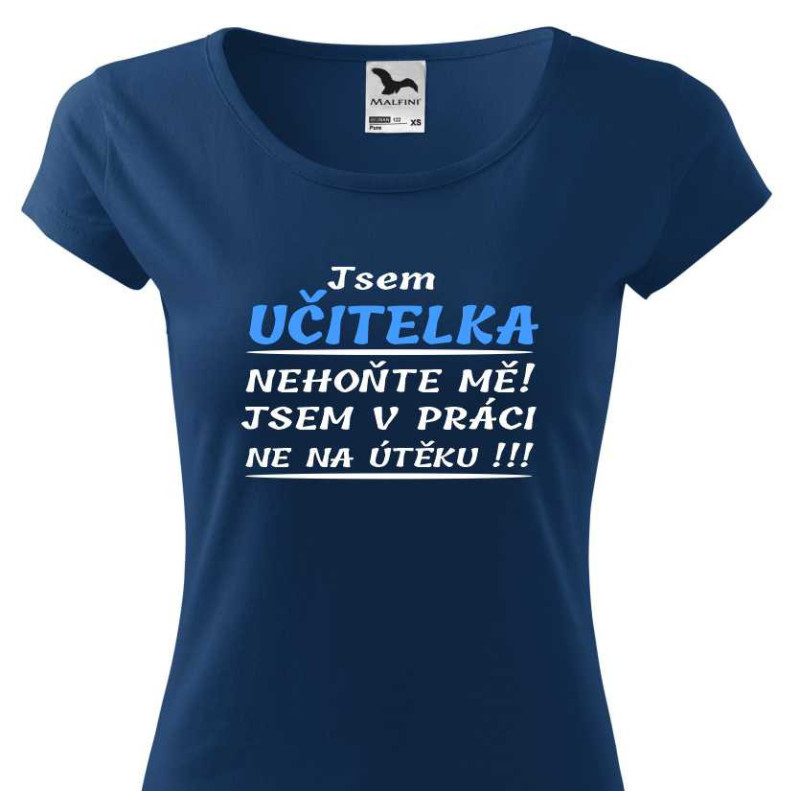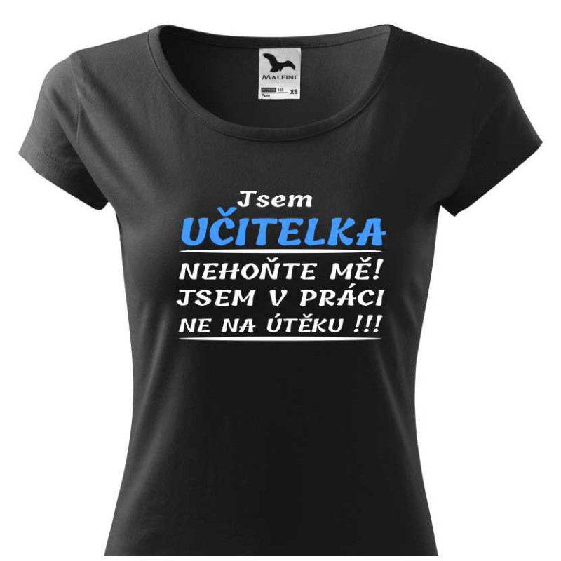 Jste učitelka a nebo hledáte dárek pro učitelku. Udělejte ji radost dárkem - vtipným tričkem s nápisem: Jsem učitelka. Nehoňte mně. Jsem v práci ne na útěku!