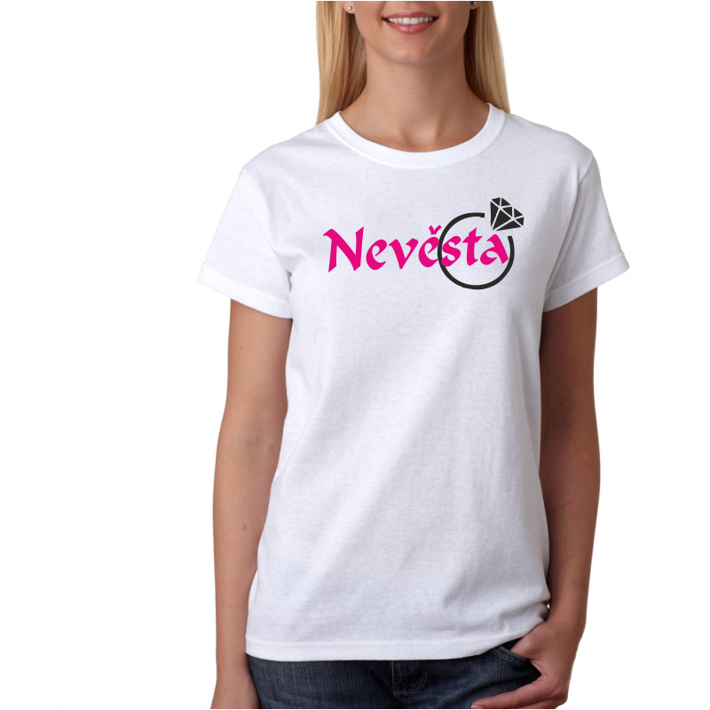 Dámské tričko s krátkým rukávem s potiskem Nevěsta s prstýnkem.