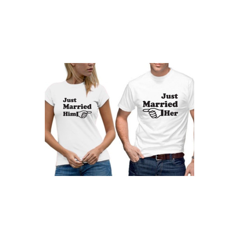 Oslavte svou novomanželskou radost s tričky, která vykřikují lásku na první pohled! Představujeme vám párová trička "Just married him / her", dokonalý způsob, jak sdílet vaše štěstí se světem. Tyto trička jsou navržena tak, aby vám umožnila svorně a s hrdostí prezentovat váš nový životní status.