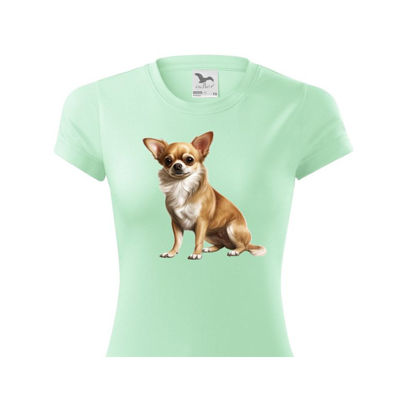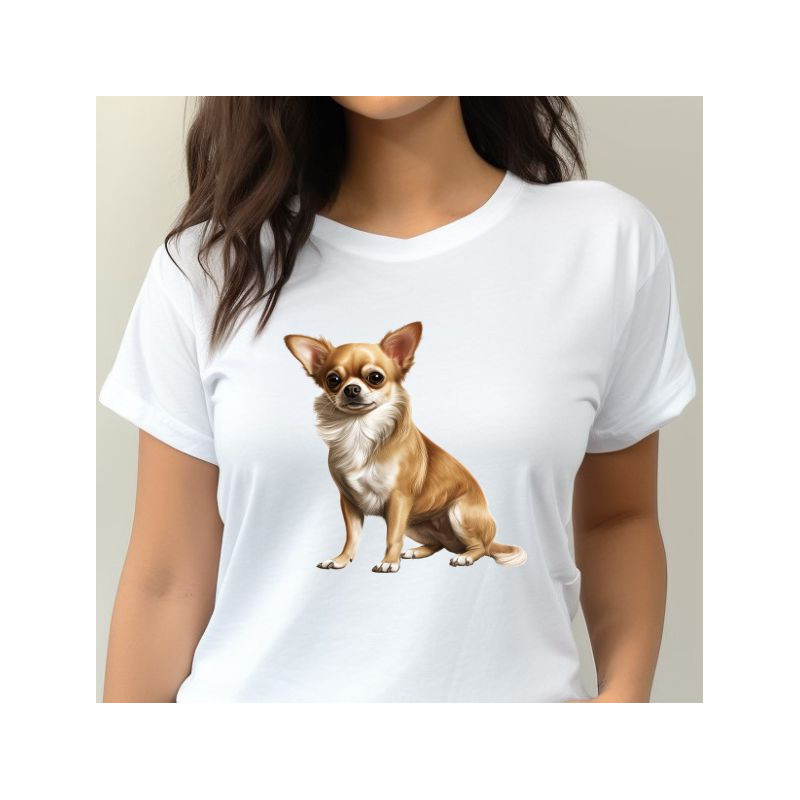 Elegantní dámské tričko s motivem roztomilé Čivavy je perfektním dárkem pro každou milovnici tohoto malého, ale odvážného plemene. Kvalitní materiál a pohodlný střih zajišťují příjemné nošení, zatímco originální potisk vystihuje jedinečný šarm Čivavy.
