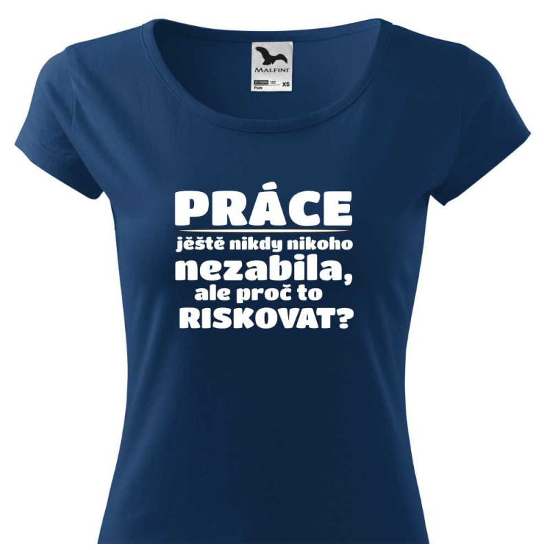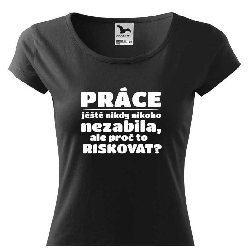 Život je příliš krátký na to, abychom ho brali vážně! Dopřejte sobě nebo své blízké dámě tričko s humorným poselstvím, které vystihuje, co si mnozí z nás občas myslí. Nápis "Práce ještě nikdy nikoho nezabila, ale proč to riskovat?" zaručeně pobaví kolegy v práci, přátele na večírku nebo rodinu při neformálních setkáních.