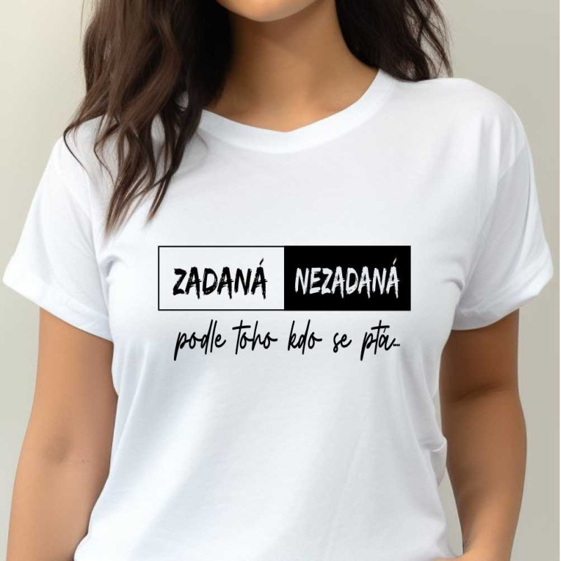 Ukažte světu svůj smysl pro humor a buďte středem pozornosti s naším dámským tričkem "Zadaná nebo nezadaná podle toho kdo se ptá"!
