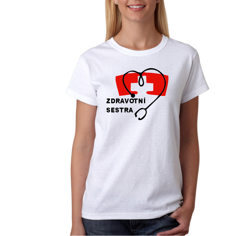 Tričko s potiskem "Zdravotní sestra." Udělejte radost sobě nebo jako dárek dívce či ženě povoláním zdravotní sestra.