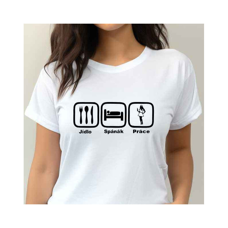 Ideální dárek pro každou zdravotní sestru, která zná náročnost svého povolání. Toto tričko vtipně vystihuje realitu života zdravotní sestry, kde se střídá práce, jídlo a občas i spánek. Perfektní způsob, jak vykouzlit úsměv na tváři té, která se stará o druhé.