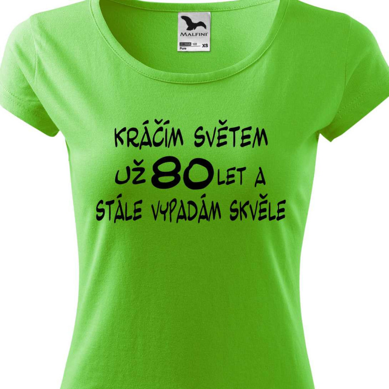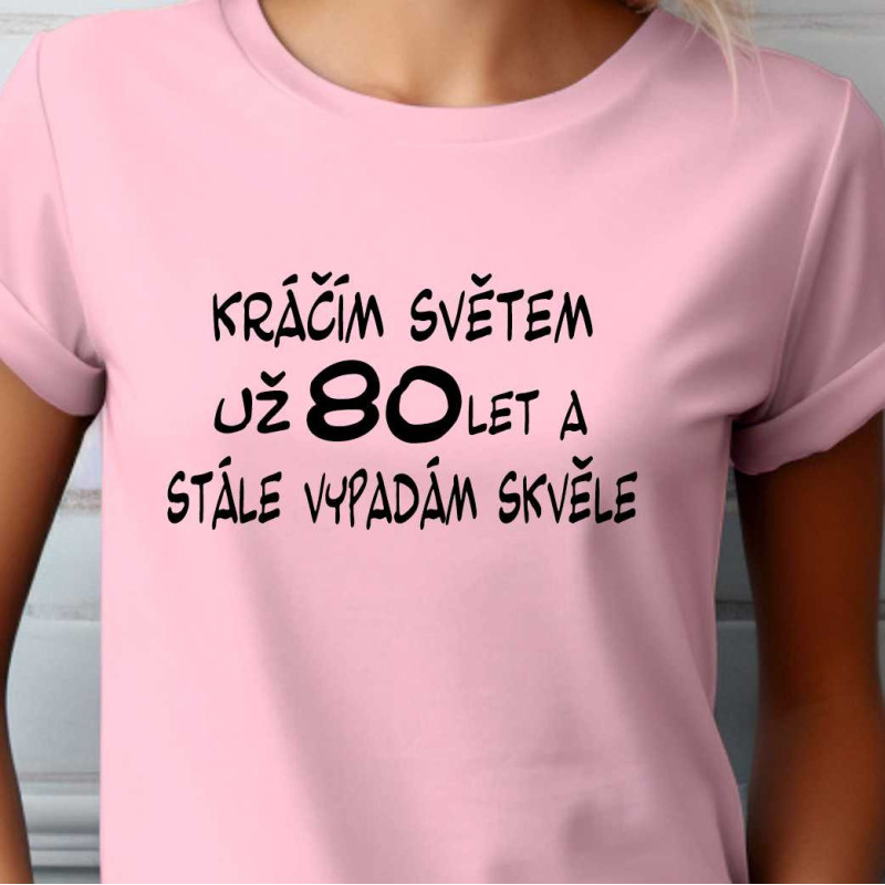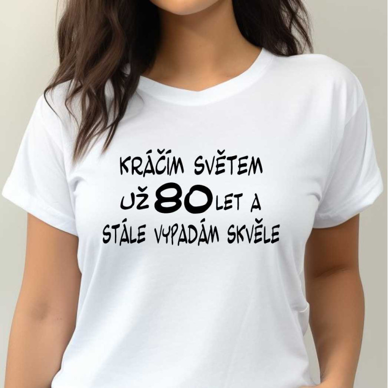Dámské tričko Kráčím světem už 80 let – ideální dárek k oslavě osmdesátých narozenin! Narozeniny jsou jedinečnou příležitostí, kterou stojí za to oslavit. Toto tričko je dokonalým dárkem, kterým vyjádříte svou lásku a obdiv. Každý nositel bude mít na tváři úsměv od ucha k uchu.