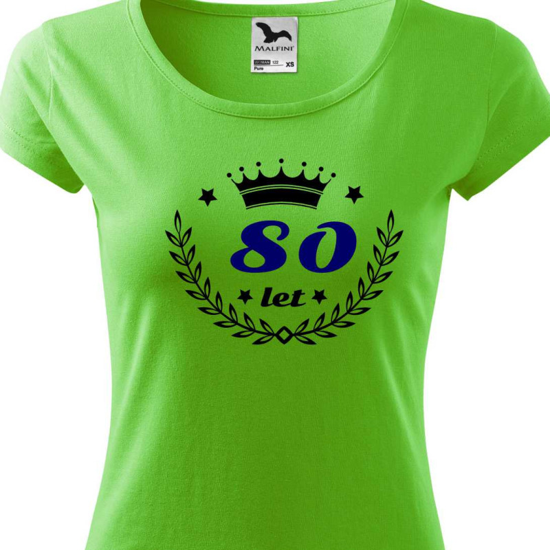 Dámské tričko s potiskem "80 let" je originálním dárkem k 80. narozeninám pro ženu. Tričko s potiskem vytvoří příjemnou náladu, vykouzlí úsměv a bude vzpomínkou na člověka, který tričko daroval. Tričko k oslavě 80. narozenin.