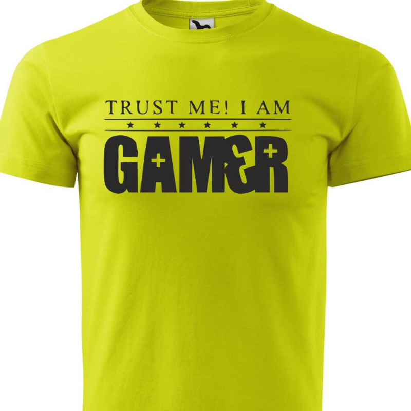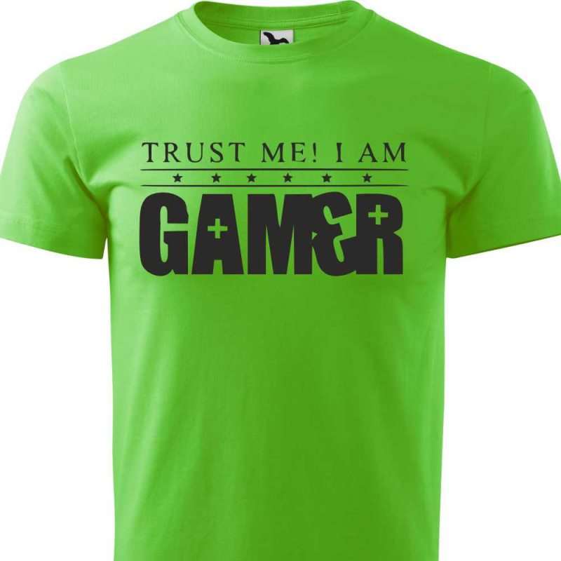 Dětské bavlněné tričko s potiskem: trust me i am gamer. Je skvělé jako dárek k Vánocům nebo narozeninám pro dítě, které má zálibu v počitačových hrách. Udělejte radost svému synovi, bratrovni nebo jiné osobě blízké tímto kvalitním tričkem pro hráče počitačových her.