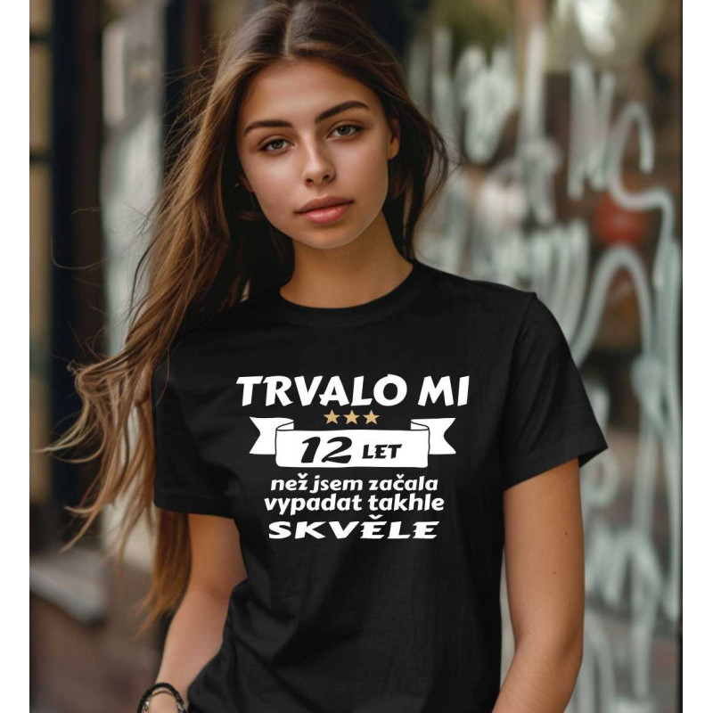 Hledáte dárek k 12 narozeninám pro dívku? Dívčí tričko s potiskem: Trvalo mi 12 let než jsem začala vypadat takhle skvělě je ideální dárek k narozeninám. Udělejte radost své dceři, sestře nebo jinému blízkému tričkem s vtipným potiskem, které bude skvělé na narozeninovou oslavu a hlavně udělá velkou radost.