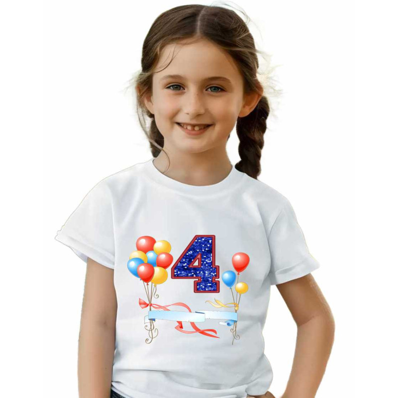 Naše tričko je navrženo s láskou a péčí, aby se vaše dítě cítilo výjimečně na svůj velký den. Velké číslo 4 na hrudi, doplněné hravými narozeninovými motivy, okamžitě upoutá pozornost a vykouzlí úsměv na tváři oslavence.