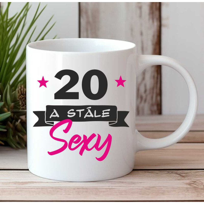 Keramický hrnek nebo matné sklo k narozeninám s potiskem 20 a stále sexy je oblíbený se zakoupením trička s tímto motivem. Originální hrneček k 20 narozeninám udělá radost a moderní design potisku bude vypadat skvěle v každé domácnosti.