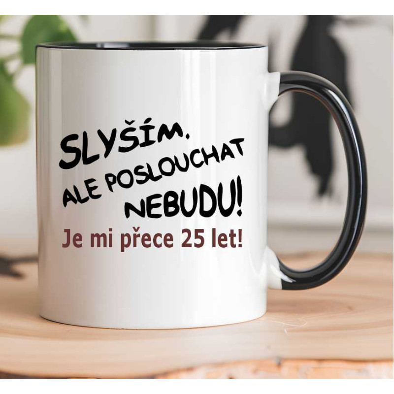 Hrnek s vtipným potiskem je vtipný a praktický dárek k 25 narozeninám pro muže, který najde použití na kávu nebo čaj a zůstane památkou.