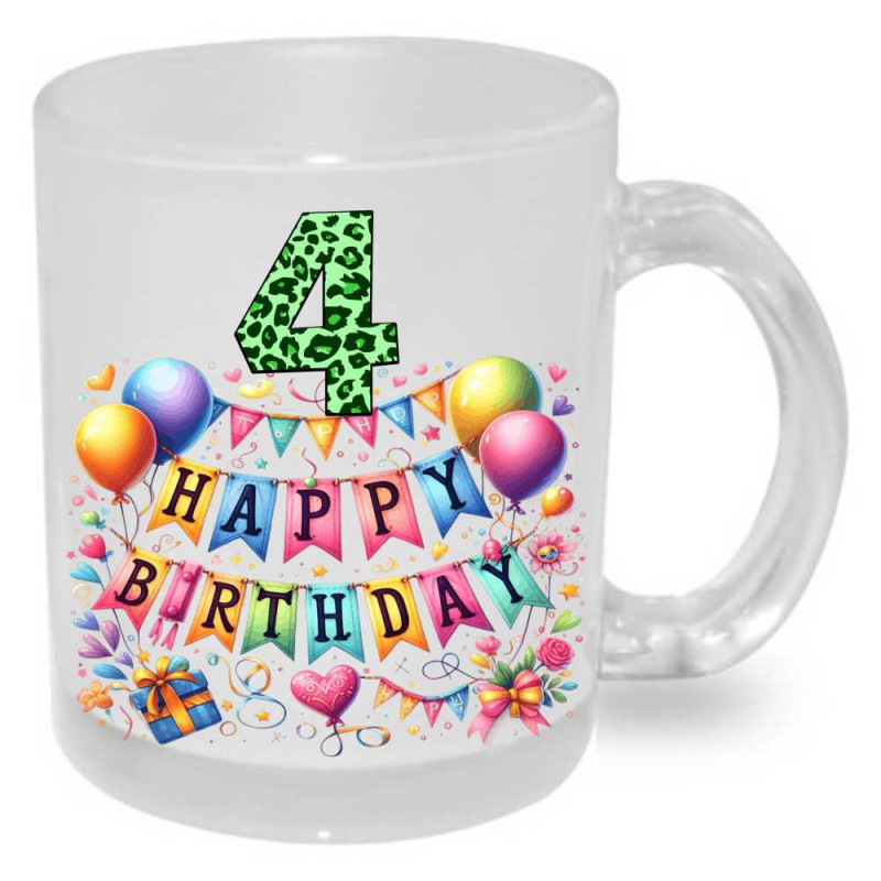 Hrníček je zdobený výraznými a barevnými obrázky, které okamžitě upoutají pozornost každého čtyřletého dítěte. Veselý design s narozeninovým motivem zahrnuje balonky, dorty a samozřejmě číslo 4, což činí tento hrníček dokonalým pro oslavu čtvrtých narozenin.