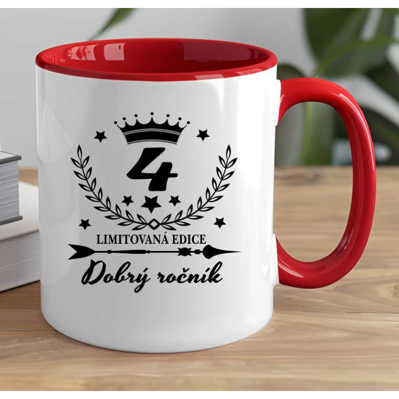 Hrnek - 4 roky limitovaná edice dobrý ročník. Skvělý dárek k 4 narozeninám.