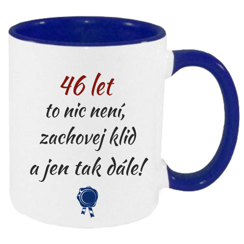 Skvělý narozeninový dárek pro muže i ženy k 46. narozeninám, kteří slaví 46 let života s úsměvem. Tento hrnek jim bude každý den připomínat, že věk je jen stav mysli.