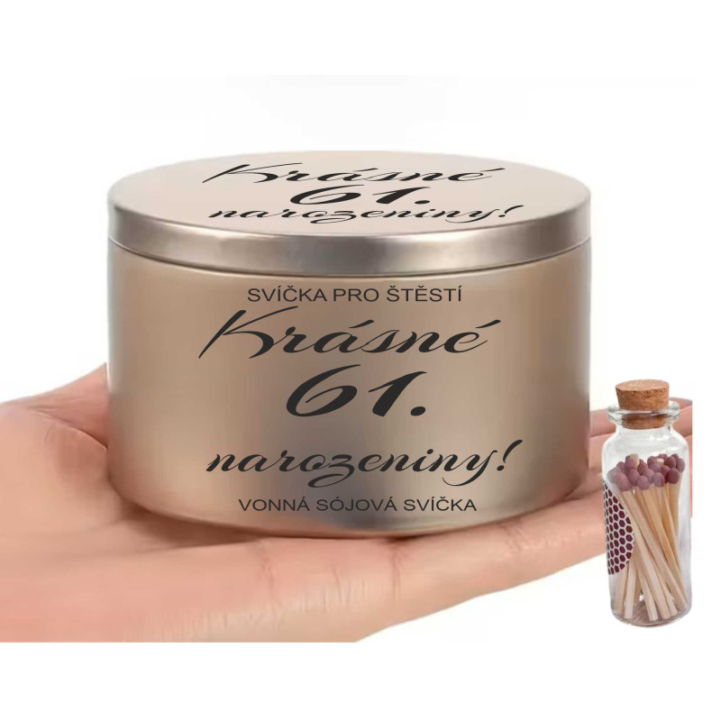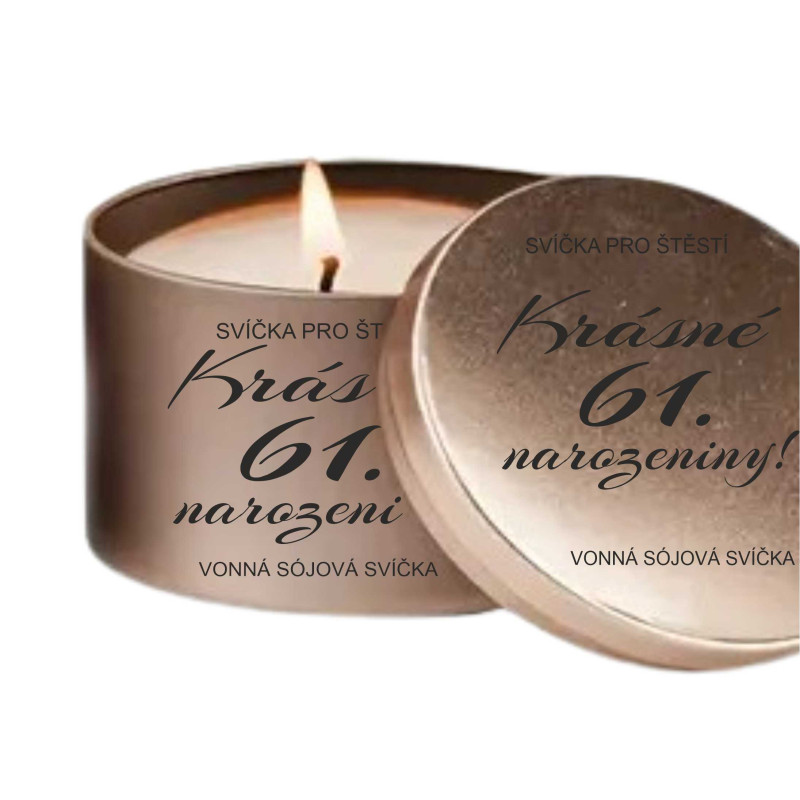 vonná svíčka s motivem „Krásné 61. narozeniny“