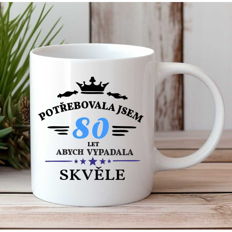 Keramický hrnek s tipným nápisem "Potřebovala jsem 80 let, abych vypadala skvěle" je jedinečným dárkem, který bude každý den připomínat úspěchy a krásu života. Praktický dárek pro ženu k 80. narozeninám, který zůstane na památku po dlouhou dobu.