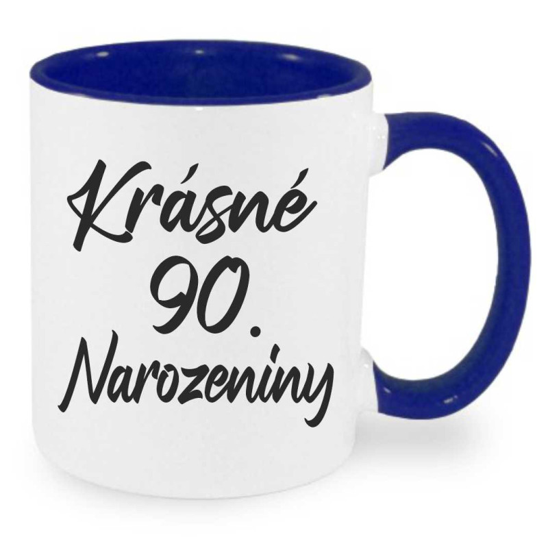 Keramický hrnek poslouží jako dárek pro muže k 90. narozeninám. Potisk je z obou stran s nápisy: "Krásné 90. narozeniny" a da druhé straně "Hodně štěstí, zdraví a oslavy bez obavy, že Ti bude o rok víc, nedělej si z toho nic".