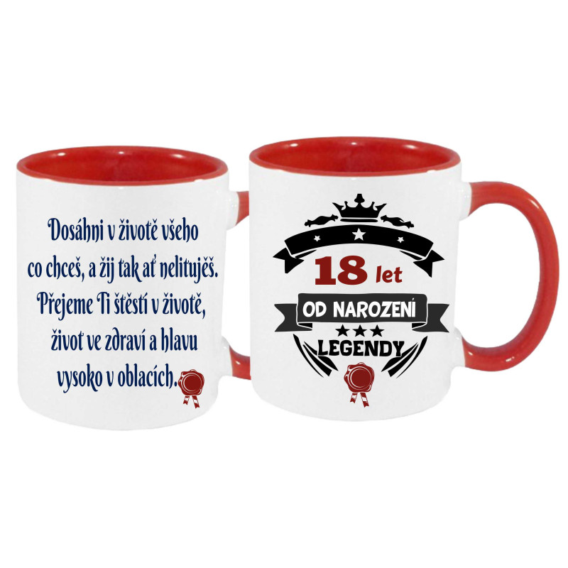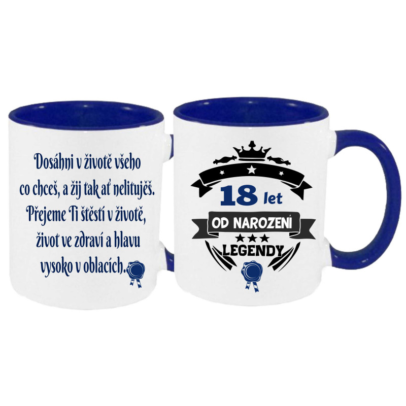 Oslavte 18. narozeniny originálním dárkem, který potěší každého čerstvého dospěláka! Stylový hrnek s inspirativním potiskem „Dosáhni v životě všeho, co chceš…“ a hrdým označením na druhé straně „18 let od narození legendy“ je skvělou volbou pro muže i ženy.