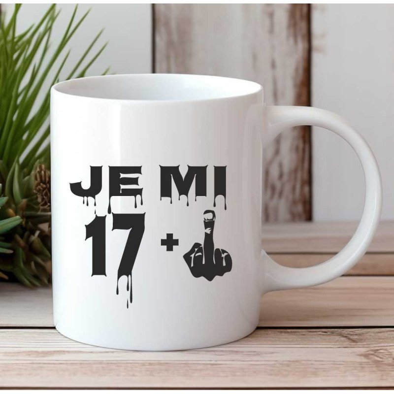Hledáte dárek, který rozesměje oslavence jeho 18. narozenin a zároveň bude praktický? Tento hrnek s vtipným nápisem "Je mi 17 plus prostředníček" je trefou do černého!